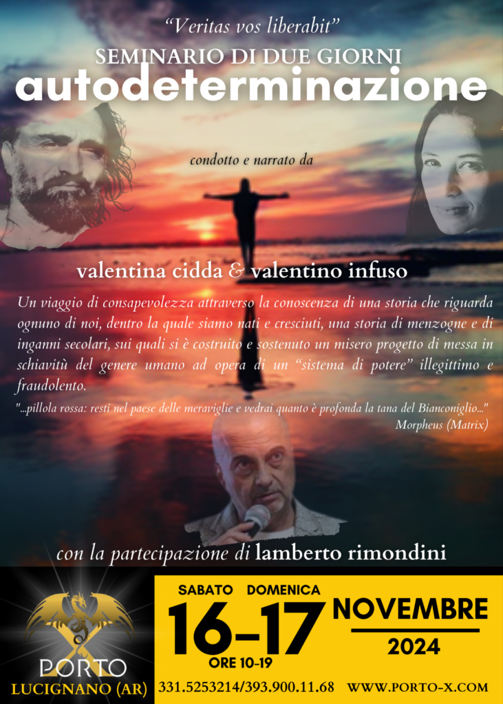 Venite a scoprire cosa si nasconde dietro un sistema di potere illegittimo, stati nazionali fasulli e fraudolenti, ogni apparenza della società che conosciamo con le sue leggi, le sue propagandistiche versioni delle cose, le sue banche, i suoi granitici doveri di bravi cittadini a cui ci sentiamo assoggettati. Venite a conoscere la verità celata dietro grandi catastrofi, attentati, crisi economiche, guerre programmate in un Risiko sempre più spietato. Venite a smascherare i trucchi attraverso i quali le élite di potere hanno manipolato per secoli a proprio vantaggio – e a totale svantaggio degli Esseri Umani – la più sacra e intoccabile legge dell’Universo: